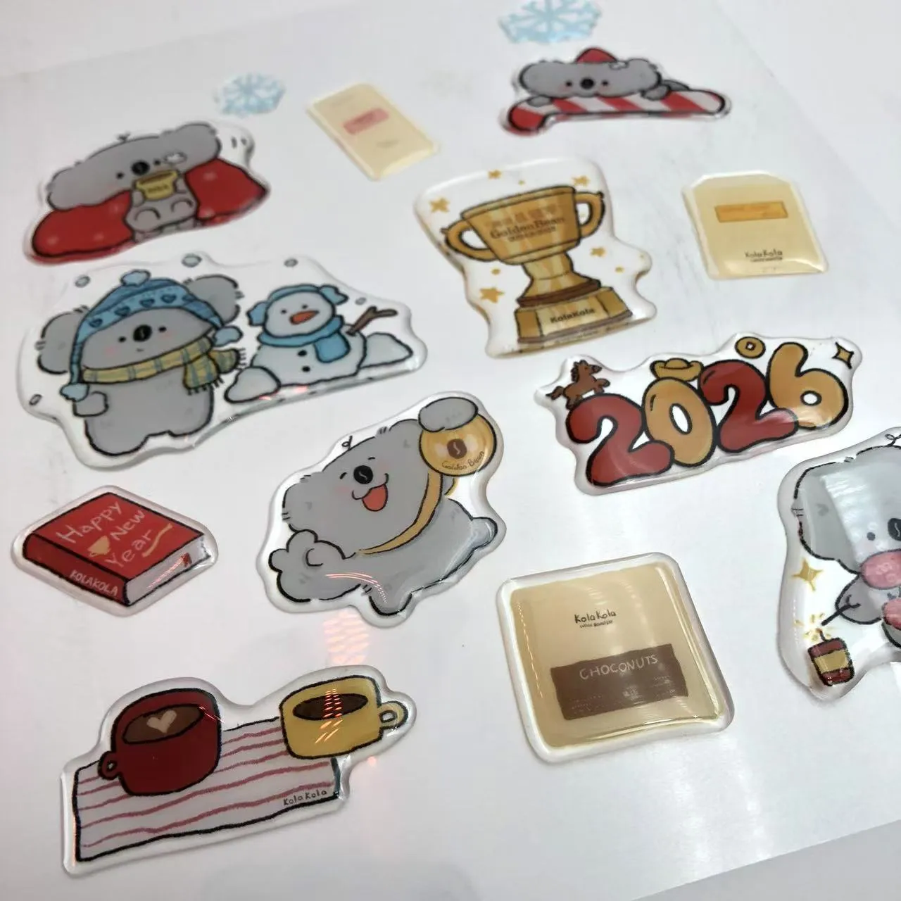 3D-Cartoon-Aufkleber aus Epoxidharzsind individuelle 3D-Aufkleber mit Cartoon-Motiven. Jeder Aufkleber ist mit einer Schicht aus hochtransparentem Epoxidharz beschichtet, das durch einen Tropfklebeprozess ausgehärtet wird, um eine pralle, glatte und elastische erhabene Textur zu erzeugen.