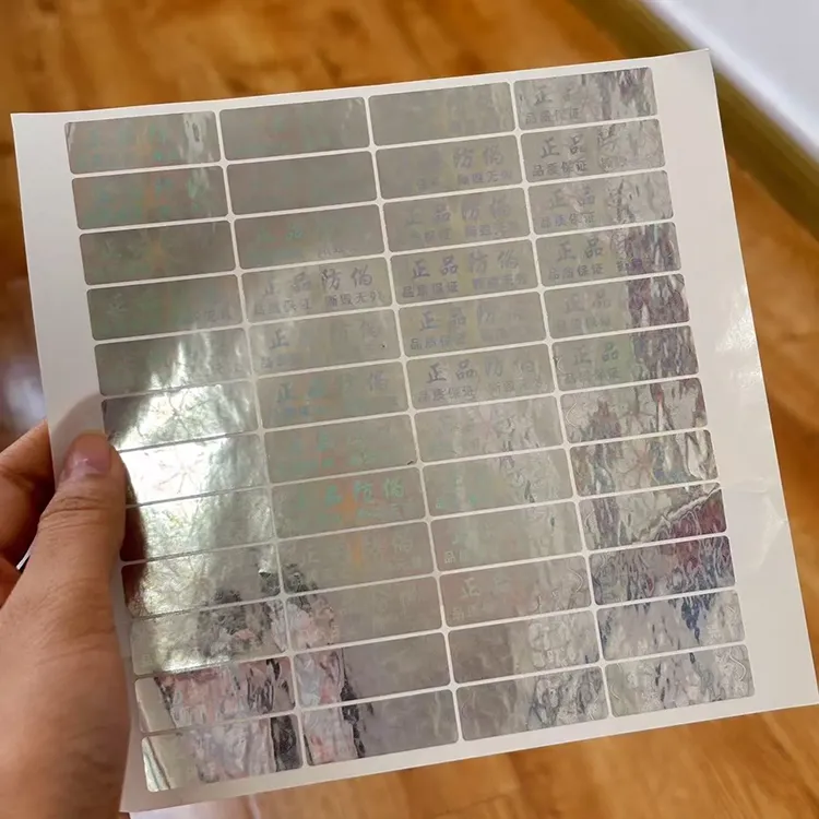 2. Laser-Laser-Anti-Counterfiting-Etikett:Hergestellt mit Laserfarben-Hologramm-Platten-Technologie und der Replikationstechnologie der Stanze. Das Etikett enthält einzigartige Lasermuster, die als echt oder falsch identifiziert werden können, indem Sie mit dem bloßen Auge beobachtet oder ein Vergrößerungsgerät verwendet, um die internen gravierten Merkmale anzuzeigen. Die Muster verschiedener Marken von Laserlaser-Anti-Counterfiting-Etiketten sind unterschiedlich und können angepasst werden.