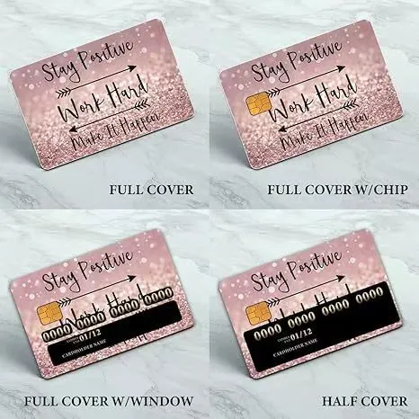 Kreditkartenaufklebergibt es in verschiedenen Ausführungen, darunter Vollhülle, Halbhülle, Hülle mit Fenster für die Kartennummer oder den Chip und Hülle mit vorgestanztem Bereich für den Mikrochip. Die Größe ist in der Regel auf Kreditkarten in Standardgröße ausgelegt, etwa 5,3 x 8,5 cm.