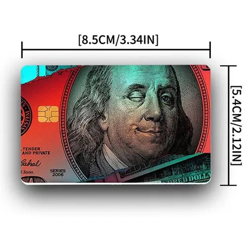 Schutz: Kreditkartenhüllenaufkleber können die Oberfläche der Karte vor Kratzern, Schrammen und geringfügigen Abnutzungen schützen und so dazu beitragen, den Zustand der Karte und die Klarheit der gedruckten Informationen wie Kartennummer, Ablaufdatum und Name des Karteninhabers zu erhalten. Einige Aufkleber können auch einen gewissen Schutz vor Schmutz und Feuchtigkeit bieten.