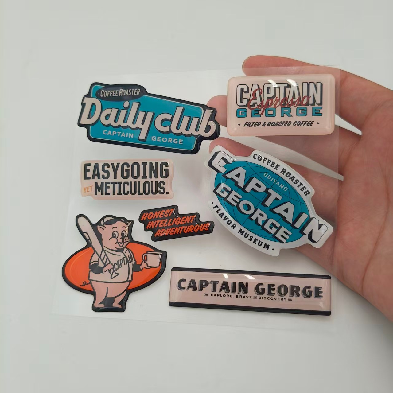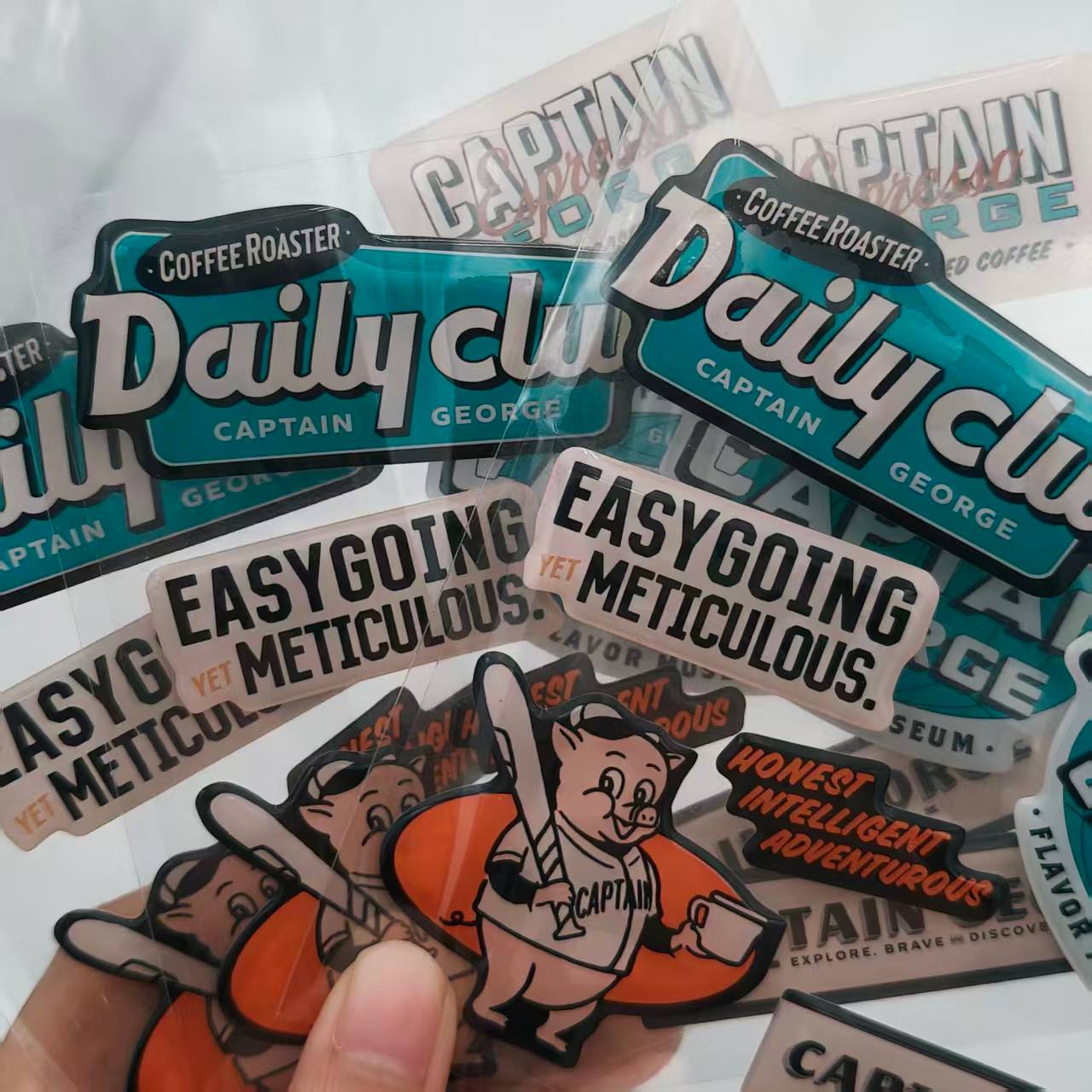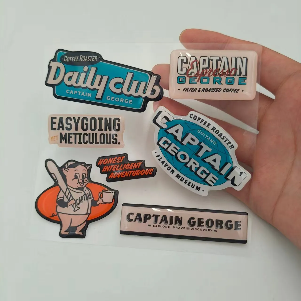 3D: Dank der transparenten Epoxidharzschicht, die über dem gedruckten Design aufgetragen wird, wirken diese Aufkleber erhaben und dreidimensionale. Dies verleiht flachen Aufklebern eine haptische und visuelle Tiefe, mit der sie einfach nicht mithalten können, und macht sie auf den ersten Blick noch auffälliger.
