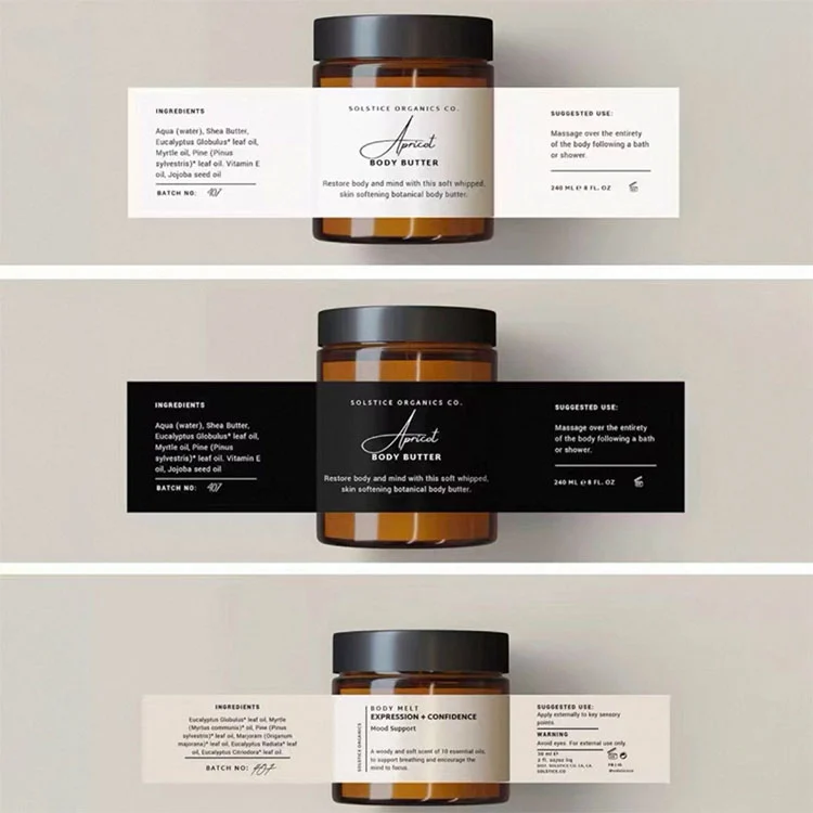 Das Gesichtscreme -Etikett ist ein Etikett, das speziell für Gesichtscreme ausgelegt ist und ein unverzichtbarer Teil davon ist. Das Etikett von Face Cream ist eine effektive Möglichkeit für Verbraucher, über produktbezogene Informationen (wie Produktzutaten, Nutzungsmethoden, Produktionsdatum und Haltbarkeit usw.) zu erfahren. Außerdem ist es ein Mittel für Marken, um ihr Produktbild zu verbessern und die Markenerkennung zu stärken. Die von JoJo Pack produzierten Etiketten der Gesichtscreme enthalten nicht nur Informationen zur Gesichtscreme, sondern bestehen auch aus hochwertigen Materialien, um die Haltbarkeit in verschiedenen Umgebungen zu gewährleisten.