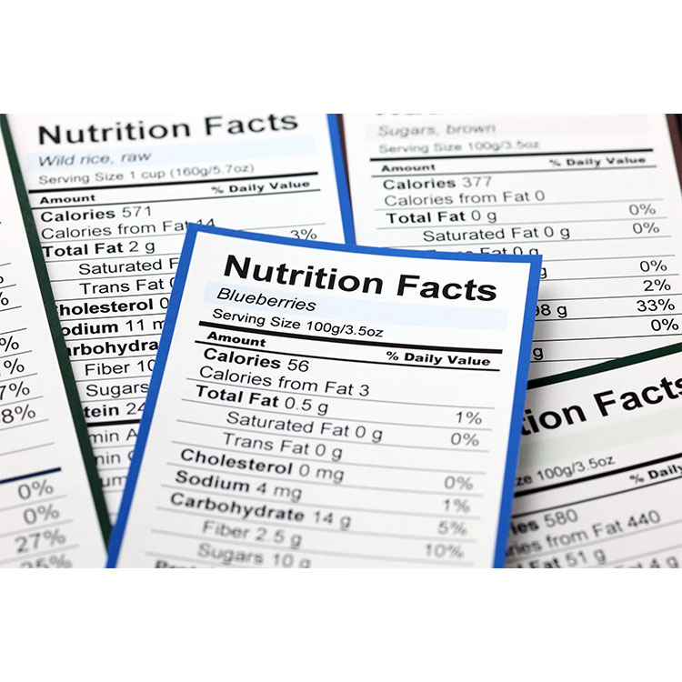 Falls zutreffend, sollte eine Ernährungs -Faktentabelle enthalten sein, die die Größe und den Kaloriengehalt jeder Portion sowie den Gehalt an Fett, Zucker, Salz, Vitaminen und Mineralien zeigt.