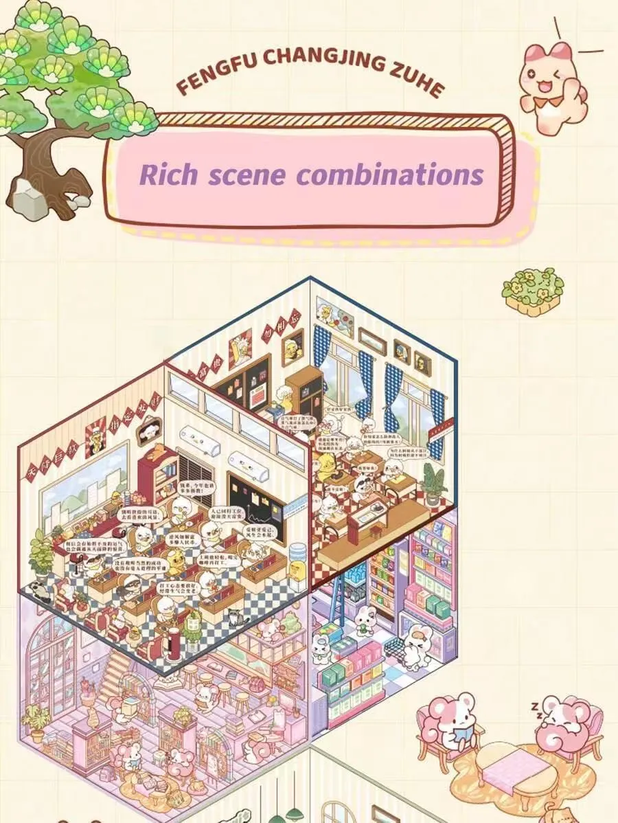Dieses Miniatur-Szenenaufkleberbuch ist ein umfassendes kulturelles und kreatives DIY-Produkt, das von unserem Unternehmen sorgfältig hergestellt wurde. Jedes Buch enthält 10 einzigartige Themenszenen, begleitet von Hunderten hochwertiger Miniaturaufkleber. Mit einem mehrschichtigen Design und einem hochauflösenden Druckverfahren werden die Details realer Szenen präzise reproduziert. Während des Zusammenbauprozesses können Benutzer Stress abbauen, ihre Konzentration fördern und ihrer Kreativität freien Lauf lassen, um einzigartige Miniaturwerke zu schaffen.