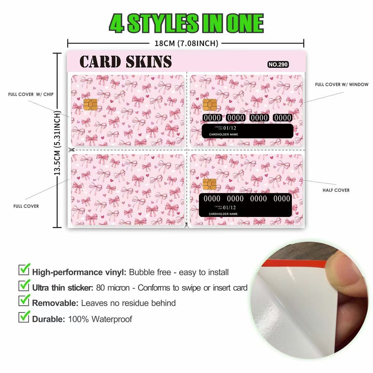 Bei der Gestaltung unserer Kreditkartenaufkleber liegt der Schwerpunkt auf der Individualisierung, um den unterschiedlichen Bedürfnissen globaler Kunden gerecht zu werden. Wir bieten unseren Kunden vier Stile zur Auswahl an, die ein breites Spektrum ästhetischer Vorlieben abdecken.