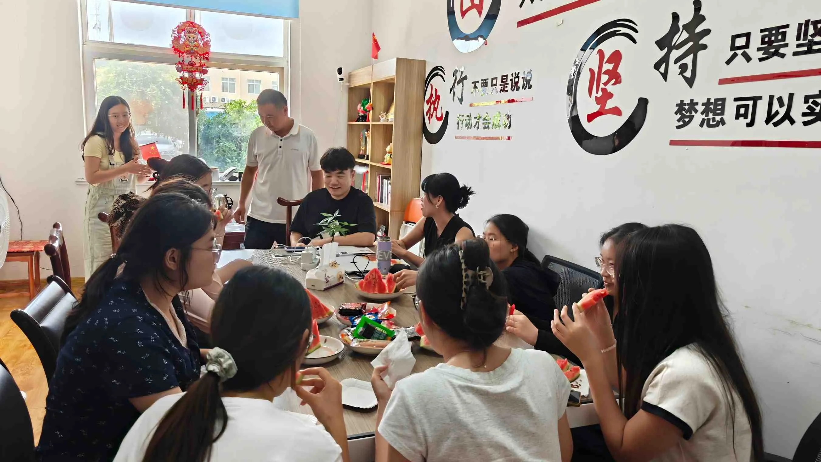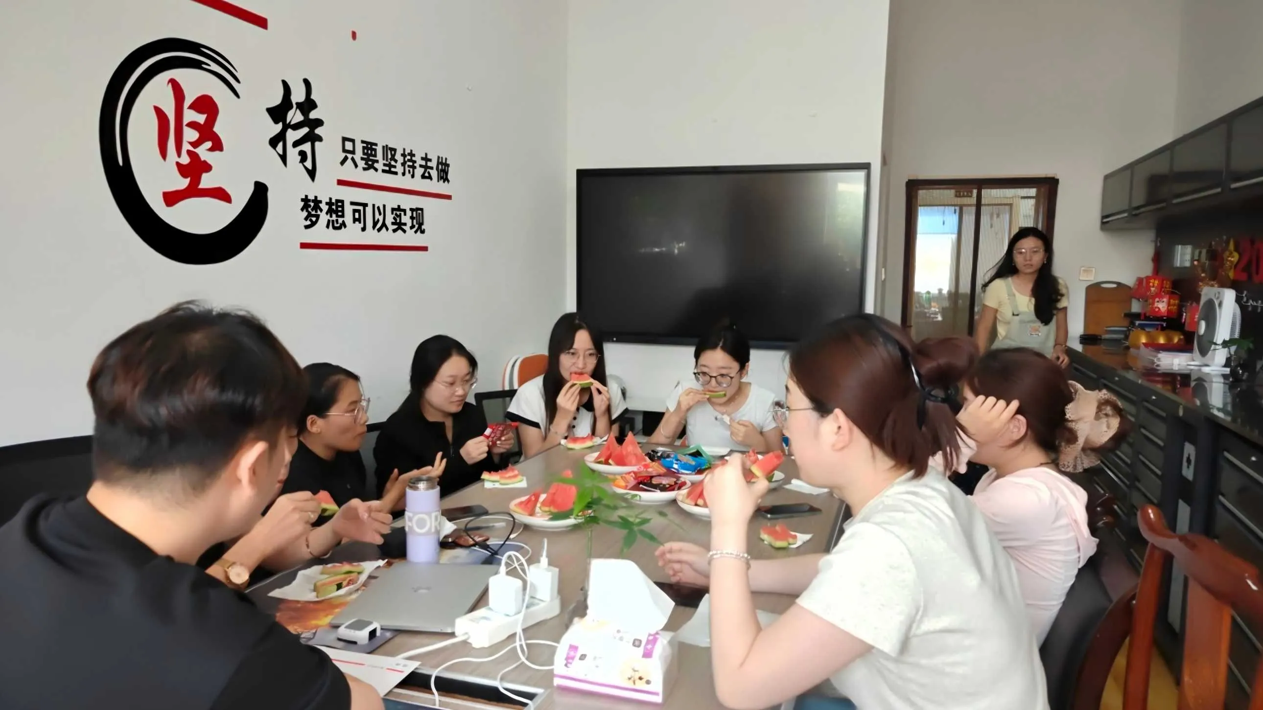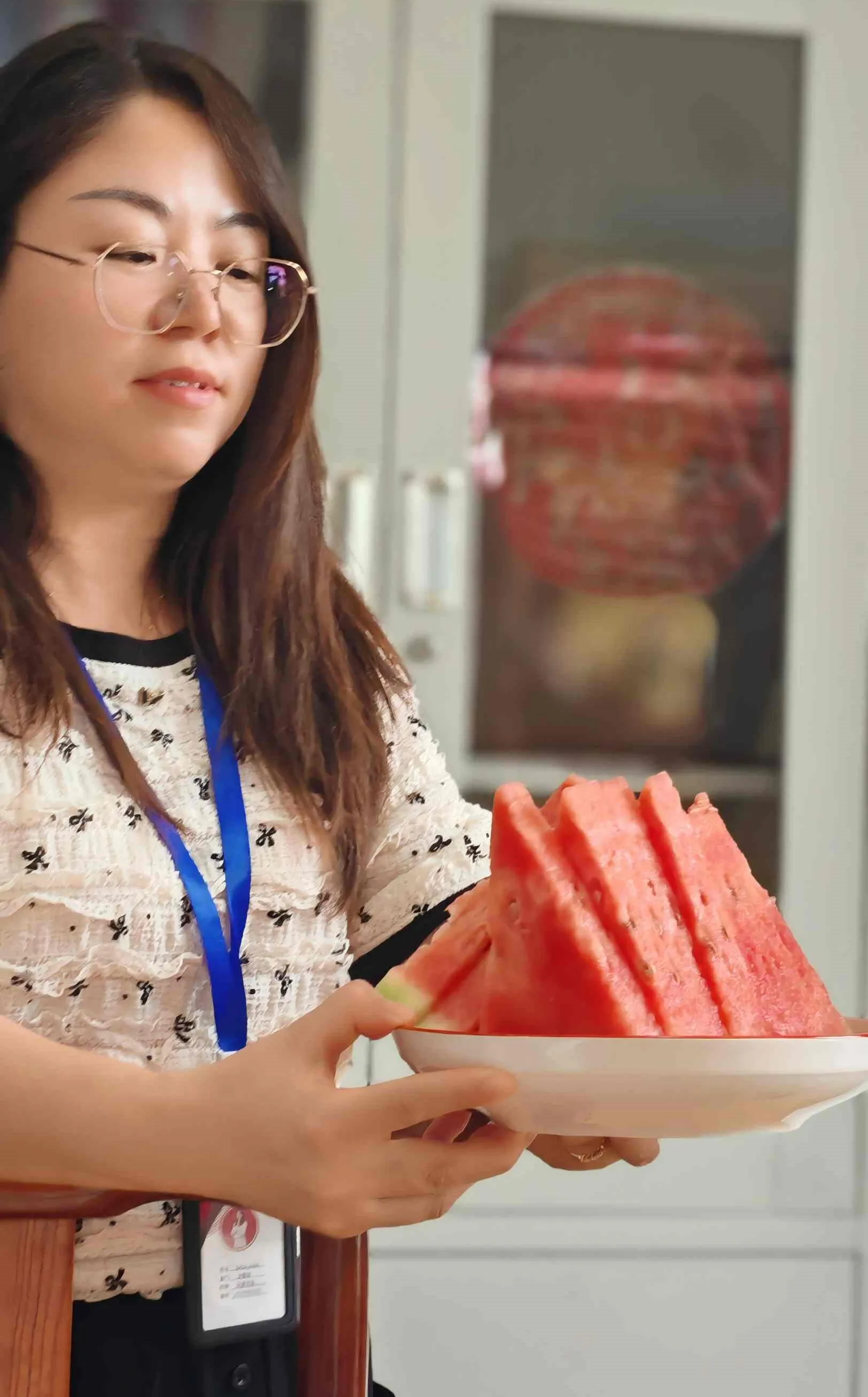 Auf der Veranstaltungsstelle wurden verschiedene Snacks ordentlich ausgestellt, von knusprigen Nüssen, süßen getrockneten Früchten bis hin zu verschiedenen exquisiten Gebäck. Die reichen und vielfältigen Snacks erfüllten die verschiedenen Geschmackspräferenzen aller. Und das auffälligste Gegenstand war der frisch ausgestellte große Wassermelone aus dem Kühlschrank. Die grüne Haut der Wassermelone wurde um das leuchtend rote Fleisch gewickelt, und als sie geschnitten wurde, war der Saft herausgespannt und ein süßes Aroma wehte auf sie zu. Es wurde das beliebteste "Kühlwerkzeug" im heißen Sommer. Die Mitarbeiter saßen in Gruppen, hielten die Wassermelone in den Händen und schulen die Snacks, und die entspannten Chats und fröhlichen Lachen stiegen ständig und fielen. Der gesamte Bürobereich war mit einer Atmosphäre der Freude gefüllt.