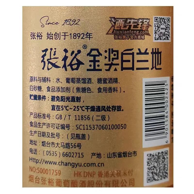 Dieser BrandyWeinetikettnutzt den Glanz von Aluminiumfolie, um einen strahlenden Glanz zu erzeugen. Der Markenname und der Produktname, die im Mittelpunkt stehen, werden hervorgehoben. Das gesamte Etikett weist eine körnige, matte Oberfläche auf, und der matte Effekt unterstreicht den Sinn des Etiketts für Luxus und Raffinesse. Diese Techniken sind besonders wichtig für Weinmarken, die auf den High-End-Markt abzielen.