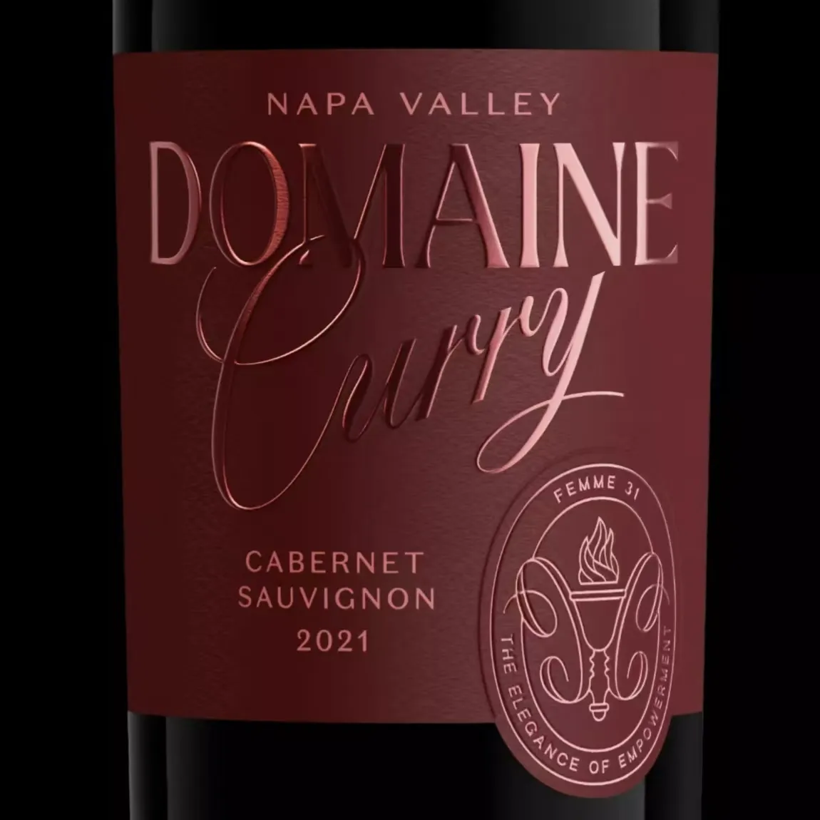 DasWeinetikettverfügt über subtile Wolkentextureffekte. Das Aufkleberdesign verwendet eine Goldfolienprägung, die dem gesamten Etikett ein fein gearbeitetes Aussehen verleiht.