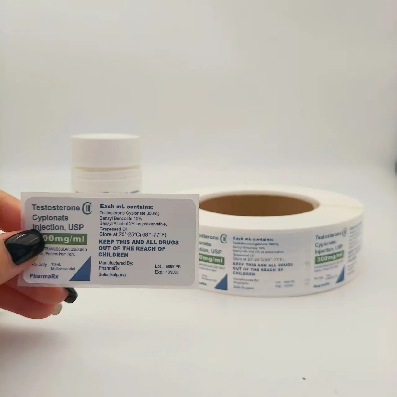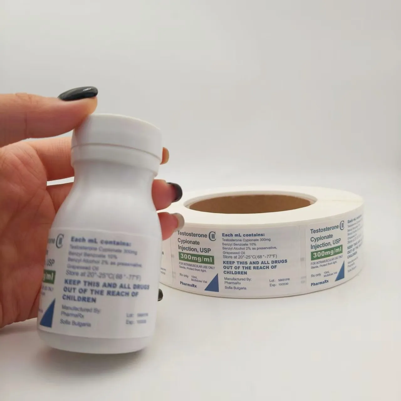 Flaschenspezifikationen: Passen Sie Durchmesser, Höhe und Form (rund, quadratisch usw.) an die Arzneimittelflasche an, um sicherzustellen, dass das Etikett vollständig aufgeklebt werden kann, ohne über die Flasche hinauszustehen oder den Flaschenmund und -boden zu verdecken.