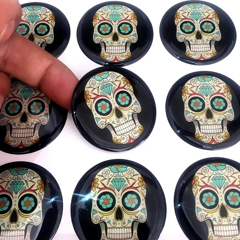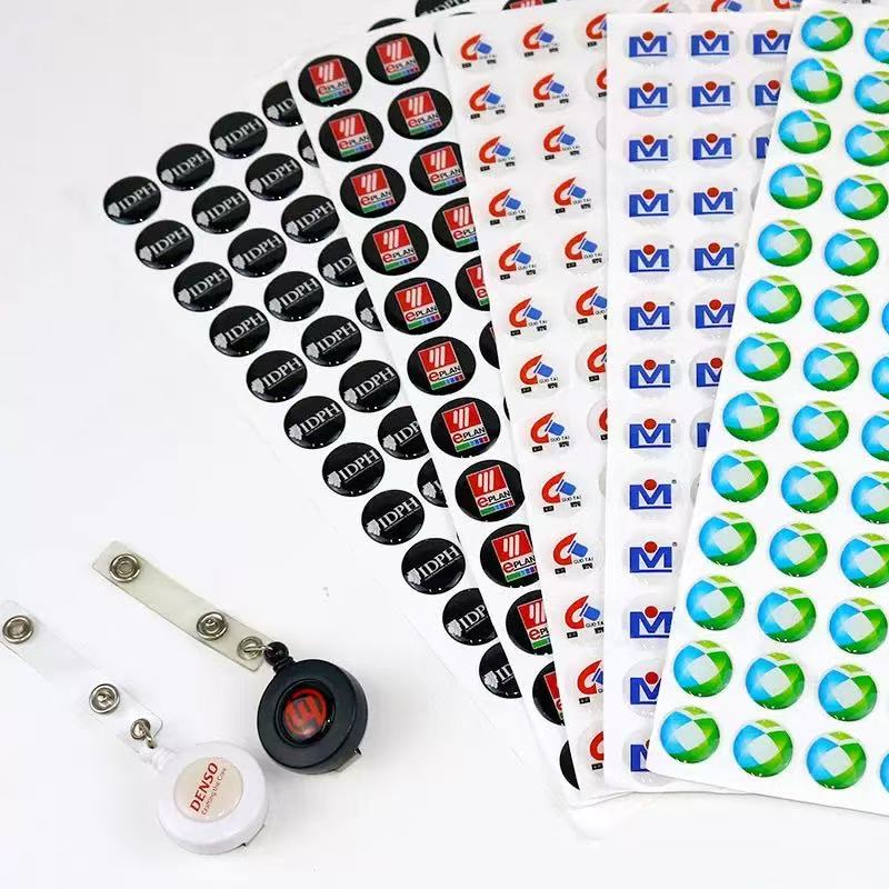 Einzigartiger dreidimensionaler Effekt: Durch einen speziellen Prozess wird auf der Oberfläche des Aufklebers eine konvexe Polyurethankuppel gebildet, die einen kristallklaren und stereoskopischen 3D-Effekt aufweist, wodurch das Muster auf den runden Epoxidbezeichnungen lebendiger und auffälliger wird und die visuelle Anziehungskraft verstärkt.