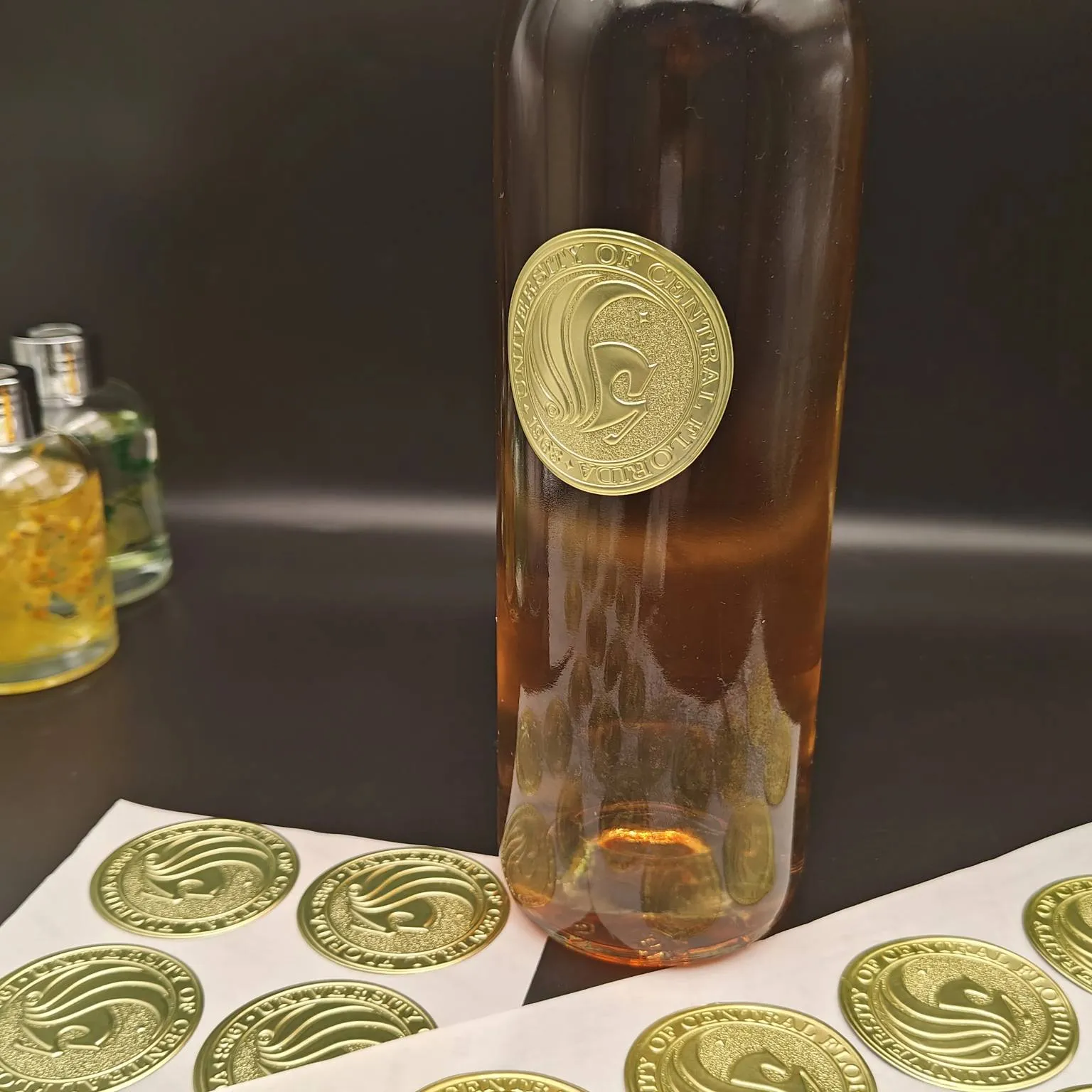 Die runde Form passt perfekt zur gewölbten Glasoberfläche von Weinflaschen und die Präge-/Foliendetails können Markenlogos, Jahrgangsjahre oder Produktserien auf dem Flaschenkörper hervorheben und so die Verpackung noch auffälliger machen.