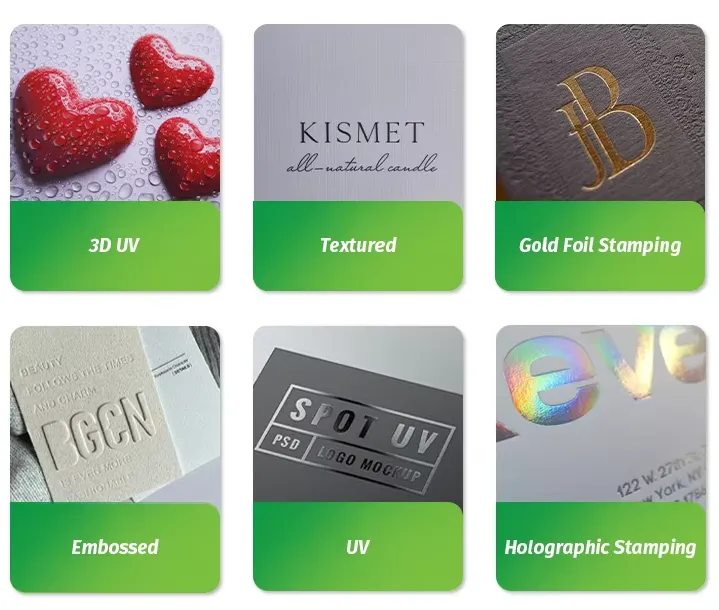 Prägung: Erstellt erhabene, dreidimensionale Muster oder Texte auf den Duftkerzenetiketten. Es fügt Textur und ein taktiles Element hinzu und macht die Duftkerzenetiketten dadurch ansprechender zum Anfassen. Die Prägung eignet sich gut für Logos oder dekorative Motive und verstärkt den Premium-Charakter.