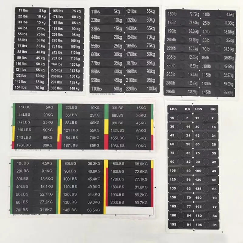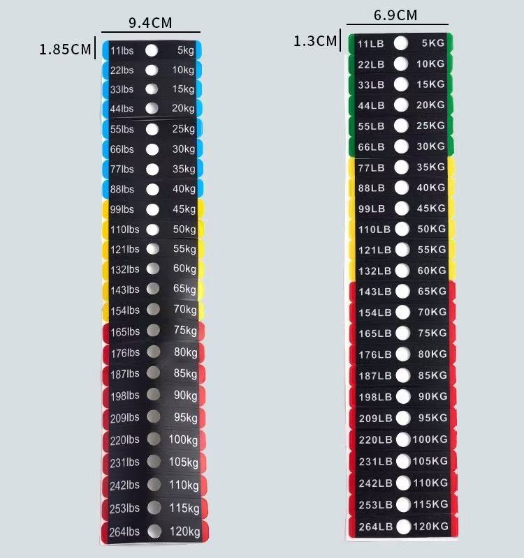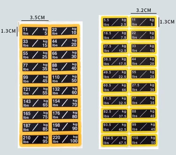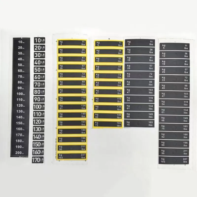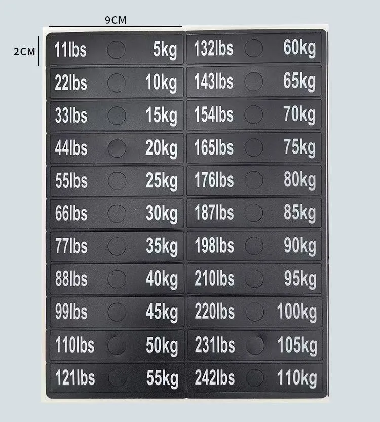 Diese aus hochwertigen Materialien gefertigten Aufkleber sind widerstandsfähig gegen Abnutzung durch den täglichen Gebrauch. Der gedruckte Text bleibt während der gesamten Lebensdauer des Fitnessgeräts scharf und verblasst nicht und sorgt so für eine langanhaltende Leistung. Mit klaren Gewichtsmarkierungen können Benutzer ihren Fitnessfortschritt besser verfolgen und Trainingsziele festlegen und so ein wissenschaftliches Trainingsmanagement erreichen.