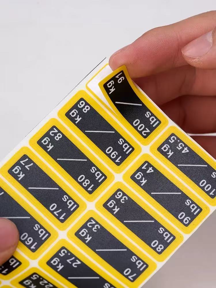 Die Gewichtsblock-Etikettenaufkleber von JOJO Pack eignen sich für eine Vielzahl von Fitnessgeräten wie Hanteln, Langhantelstangen und Hantelscheiben. Ein Satz Aufkleber kann die Markierungsanforderungen verschiedener Geräte erfüllen, was zur Reduzierung der Beschaffungskosten beiträgt.